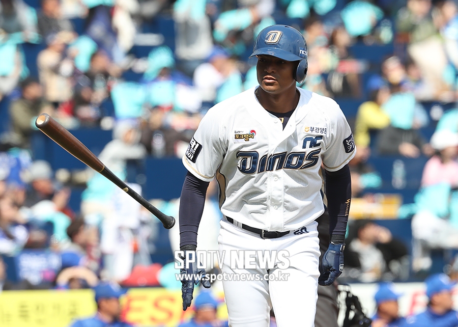 [스포티비뉴스=창원, 한희재 기자] NC 다이노스와 삼성 라이온즈의 2019 신한은행 MY CAR KBO리그 개막전이 23일 오후 창원NC파크에서 열렸다. 1회말 1사 1, 2루, NC 베탄코트가 개장 첫 홈런을 친 후 세리머니를 하고 있다.