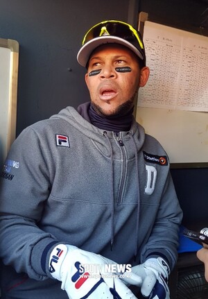 두산 베어스 외국인 타자 호세 미구엘 페르난데스가 데뷔전을 치른 소감을 이야기했다. 페르난데스는 23일 잠실야구장에서 열린 2019 신한은행 MYCAR KBO 리그 한화 이글스와 개막전에 6번 지명타자로 선발 출전해 4타수 2안타 3타점 맹타를 휘두르며 5-4 승리를 이끌었다. 모두 경기를 뒤집는 영양가 높은 적시타였다.