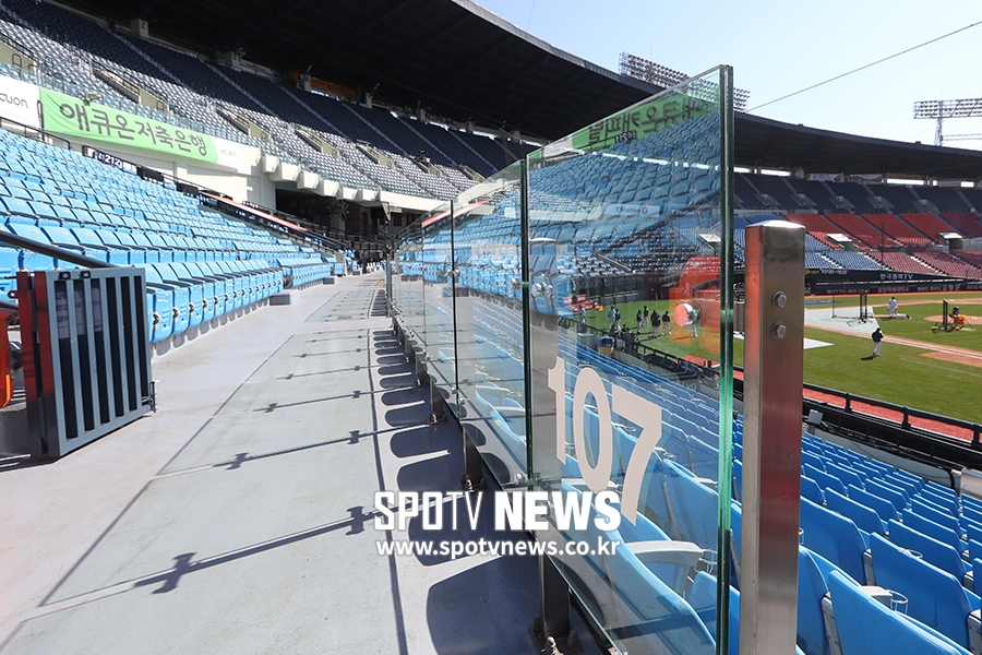 [스포티비뉴스=잠실, 곽혜미 기자] 2019 신한은행 MY CAR KBO리그 두산 베어스와 한화 이글스의 경기가 24일 오후 서울 잠실야구장에서 열린다. 기존 노후된 철제 난간에서 강화 유리 난간으로 교체된 잠실구장.