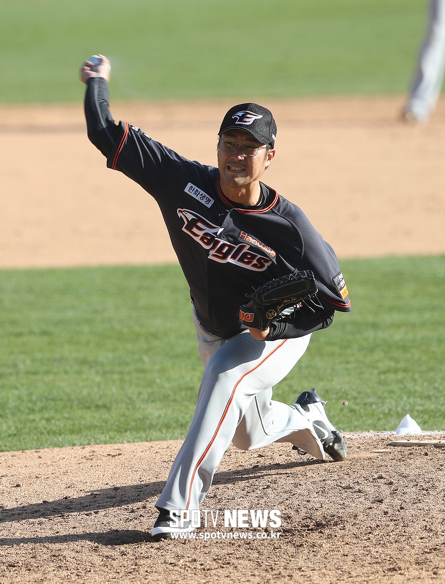 [스포티비뉴스=잠실, 곽혜미 기자] 2019 신한은행 MY CAR KBO리그 두산 베어스와 한화 이글스의 경기가 24일 오후 서울 잠실야구장에서 열렸다. 9회말 한화 장민재가 역투하고 있다.