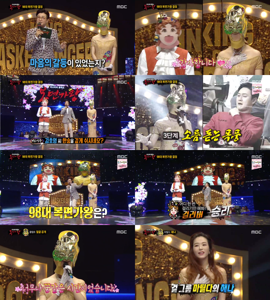 24일 오후 방송된 MBC 미스터리 음악쇼 '복면가왕'에서는 최종 결승전에 오른 걸리버와 클림트가 98대 가왕 자리를 놓고 대결을 펼쳤다.