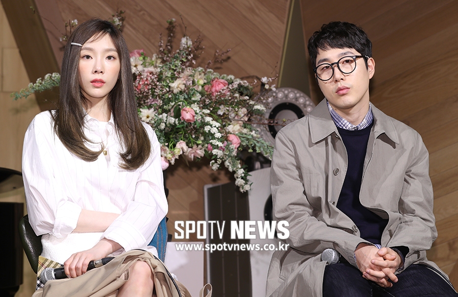 [스포티비뉴스=서울, 곽혜미 기자] '월간윤종신X빈폴' 뮤직 프로젝트 '이제 서른' 제작 발표회가 26일 오전 서울 용산구 이태원 스트라디움에서 열렸다. 가수 태연(왼쪽)과 장범준이 취재진을 바라보고 있다.