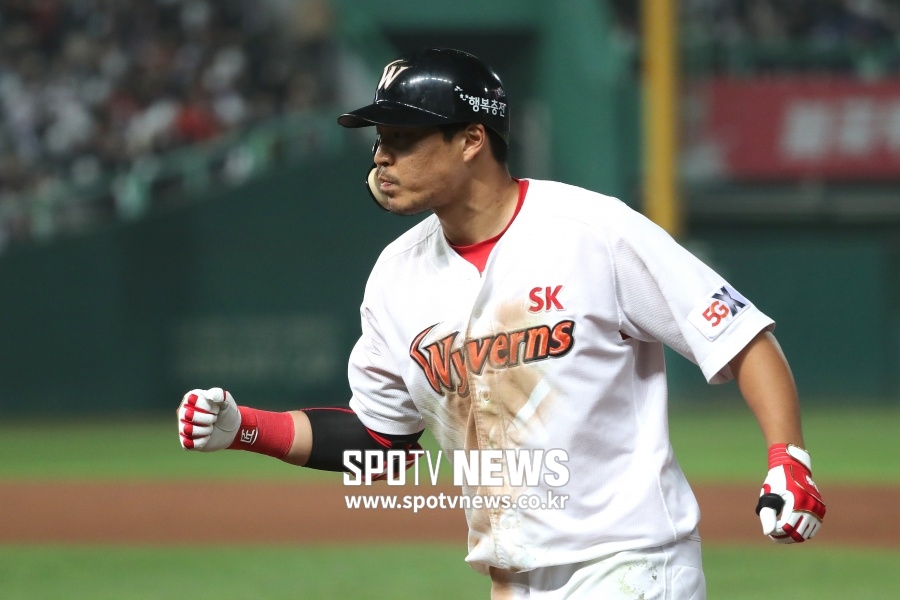 한동민은 26일 인천SK행복드림구장에서 열린 2019 신한은행 MY CAR KBO 리그 LG 트윈스와 홈경기에서 솔로 홈런을 터뜨렸다.