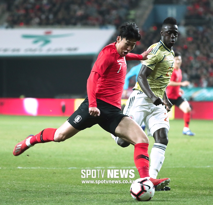 [스포티비뉴스=서울월드컵경기장, 이종현 기자] 한국이 콜롬비아를 꺾었다. 손흥민이 파울루 벤투 감독 체제에서 첫 득점을 기록했다. 9경기, 759분 만이다.
