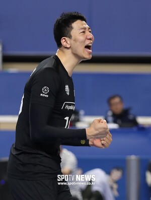 [스포티비뉴스=천안, 한희재 기자] 현대캐피탈과 대한항공의 2018-2019 도드람 V리그 챔피언 결정전 3차전이 26일 오후 충남 천안 유관순체육관에서 열렸다. 득점을 올린 현대캐피탈 신영석이 기뻐하고 있다.