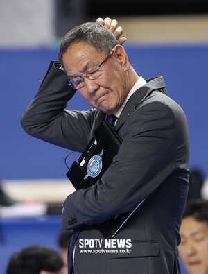 [스포티비뉴스=천안, 한희재 기자] 현대캐피탈과 대한항공의 2018-2019 도드람 V리그 챔피언 결정전 3차전이 26일 오후 충남 천안 유관순체육관에서 열렸다. 대한항공 박기원 감독이 실점에 아쉬워하고 있다.
