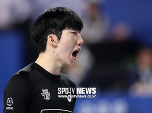 [스포티비뉴스=천안, 한희재 기자] 현대캐피탈과 대한항공의 2018-2019 도드람 V리그 챔피언 결정전 3차전이 26일 오후 충남 천안 유관순체육관에서 열렸다. 현대캐피탈 허수봉이 파이팅을 외치고 있다.