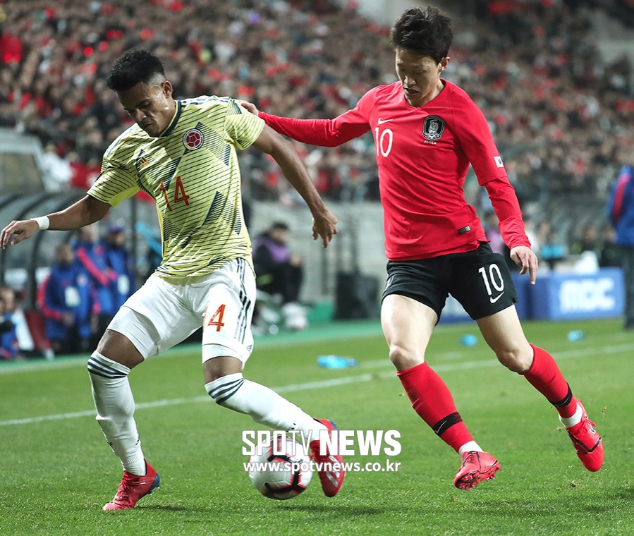 한국은 26일 밤 8시 서울월드컵경기장에서 열린 콜롬비아와 친선 경기에서 후반 4분 현재 1-1로 맞서고 있다.