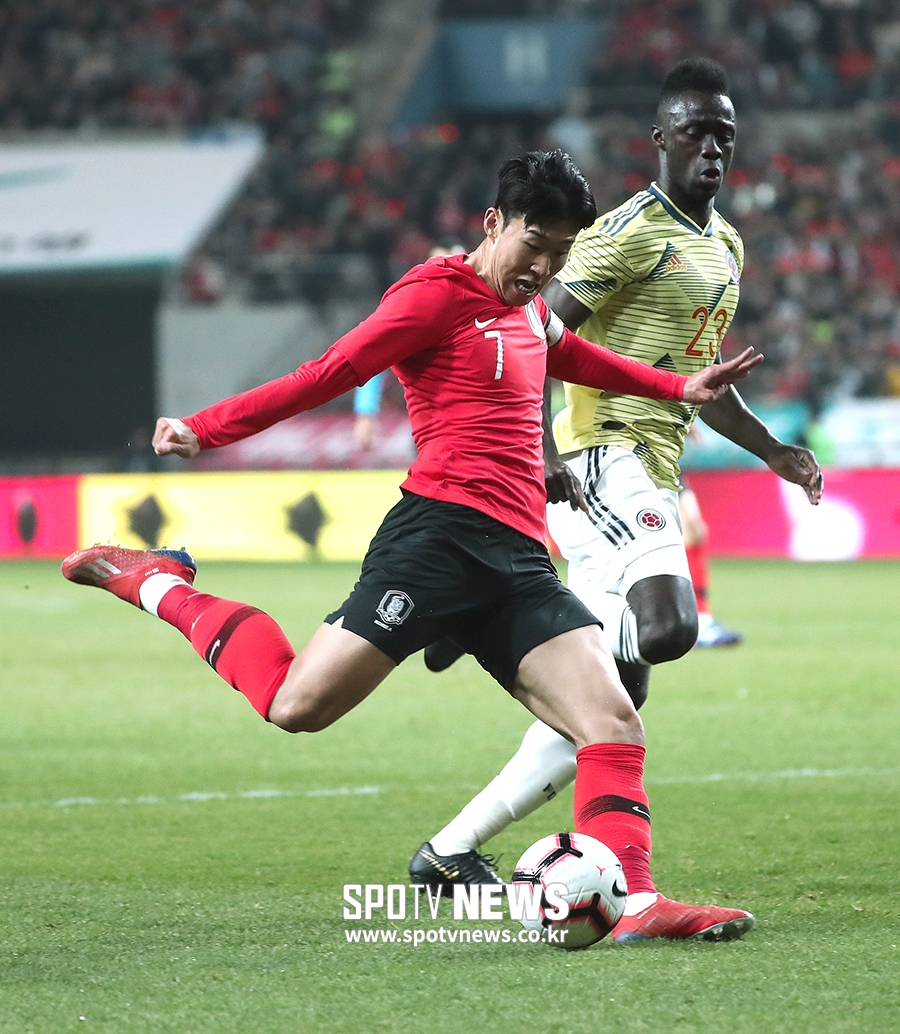벤투 감독은 손흥민과 황의조 투톱에게 득점을 맡겼다. 손흥민은 투톱에서 기민하게 움직였고, 콜롬비아 배후 공간을 연이어 타격했다. 전반 16분 황의조의 패스를 받은 손흥민은 날카로운 슈팅으로 선제골을 넣었다. 8경기 무득점이 깨지는 순간이었다.
