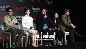 [스포티비뉴스=서울, 곽혜미 기자] 넷플릭스 오리지널 '페르소나' 제작 발표회가 27일 오전 서울 영등포구 여의도 콘래드호텔에서 열렸다. 가수 윤종신, 배우 이지은(아이유), 임성필, 전고운, 김종관 감독(왼쪽부터)이 기자 간담 시간을 갖고 있다.