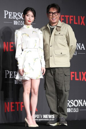 [스포티비뉴스=서울, 곽혜미 기자] 넷플릭스 오리지널 '페르소나' 제작 발표회가 27일 오전 서울 영등포구 여의도 콘래드호텔에서 열렸다. 배우 이지은(아이유)과 가수 윤종신이 포즈를 취하고 있다.