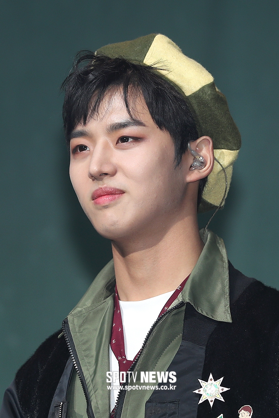 [스포티비뉴스=서울, 곽혜미 기자] 보이그룹 펜타곤 미니 8집 'Genie:us' 발매 기념 쇼케이스가 27일 오후 서울 용산구 한남동 블루스퀘어에서 열렸다. 펜타곤 홍석이 미소를 짓고 있다.
