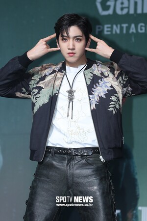 [스포티비뉴스=서울, 곽혜미 기자] 보이그룹 펜타곤 미니 8집 'Genie:us' 발매 기념 쇼케이스가 27일 오후 서울 용산구 한남동 블루스퀘어에서 열렸다. 펜타곤 우석이 포즈를 취하고 있다.
