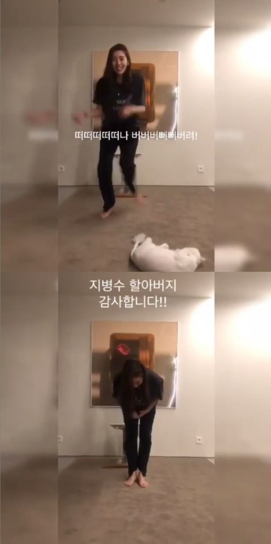 손담비는 "종로구 지병수 할아버님의 열정에 반해 너무 감사한 마음에 저도 답춤을 춰보았습니다"며 "할아버님, 건강히 오래오래 사세요"라고 메시지도 덧붙였다.