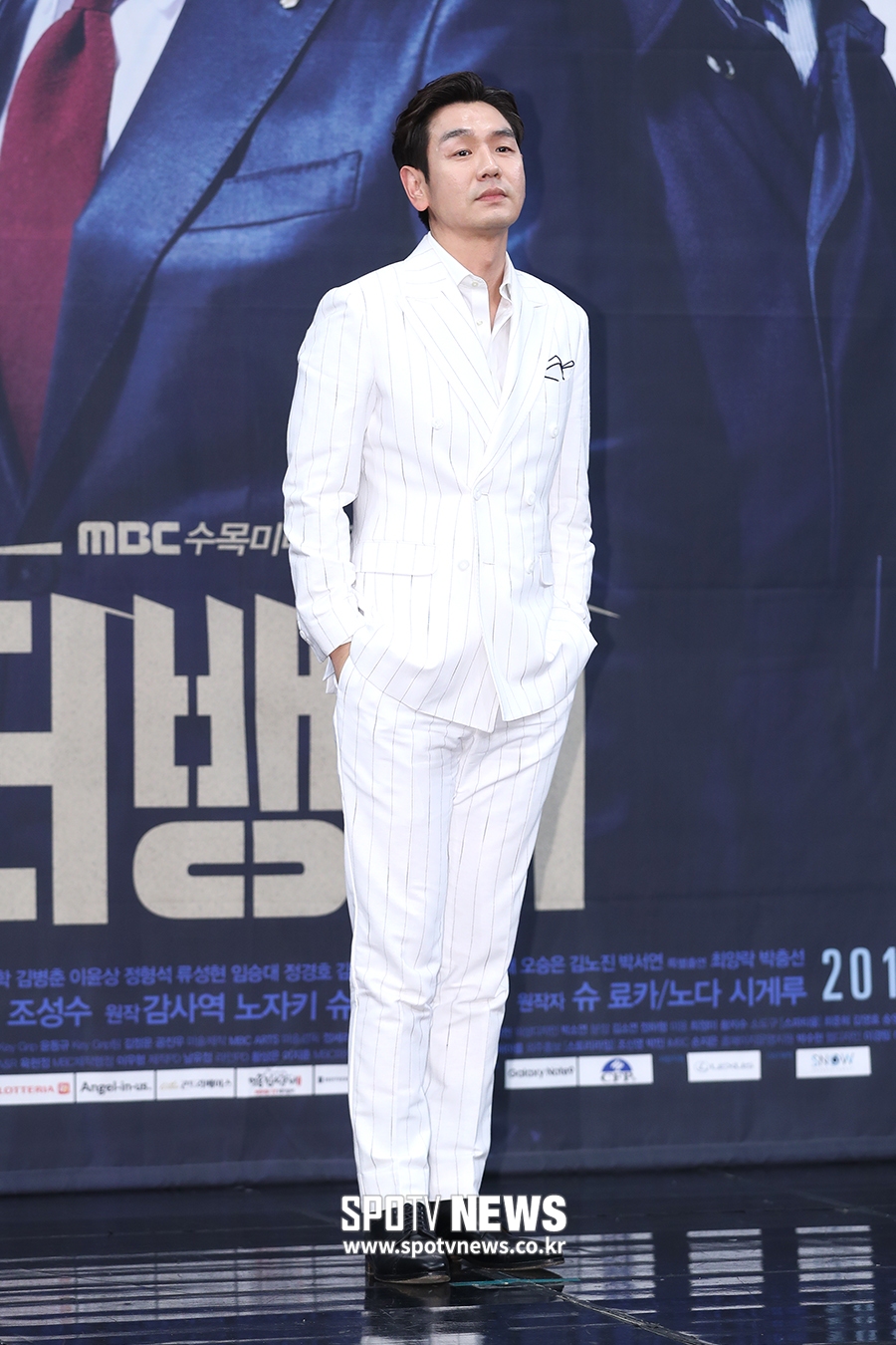 [스포티비뉴스=서울, 곽혜미 기자] MBC 새 수목극 '더 뱅커' 제작 발표회가 27일 오후 서울 마포구 상암동 MBC 골든마우스홀에서 열렸다. 배우 김상중이 포즈를 취하고 있다. 배우 김태우가 포즈를 취하고 있다.