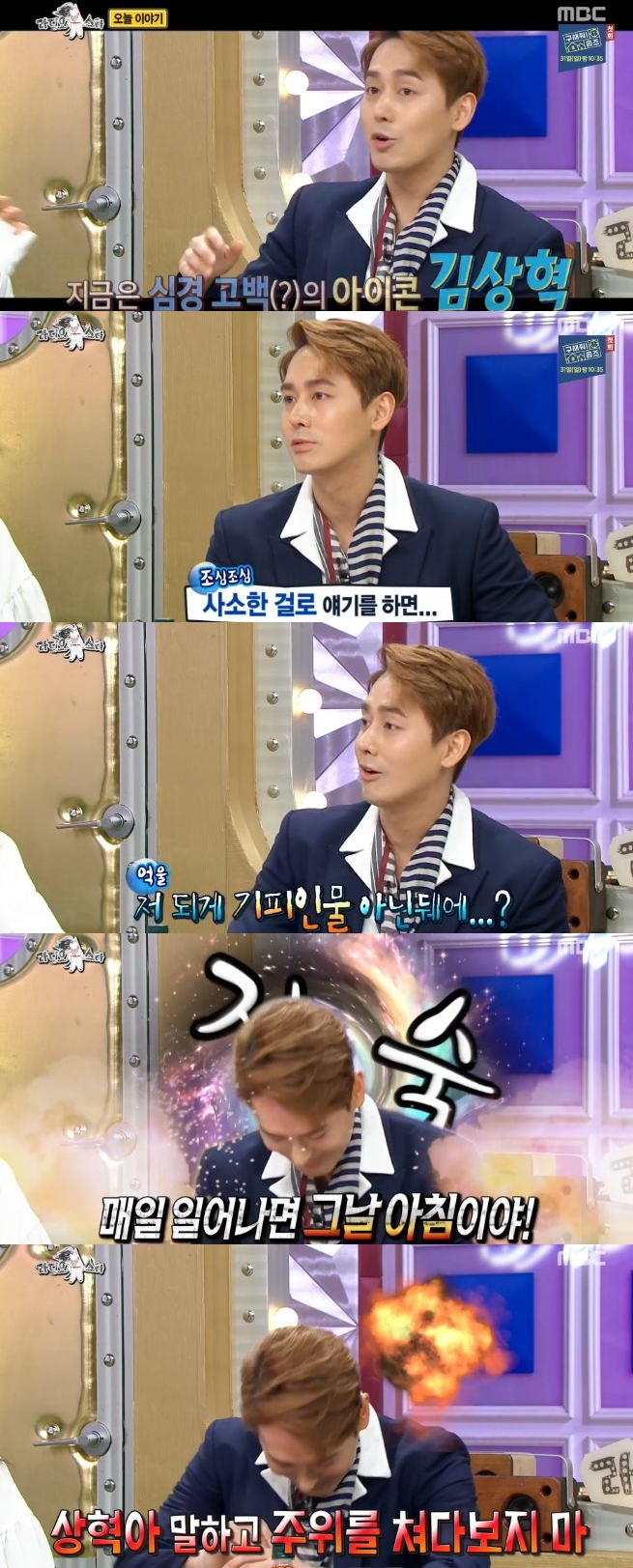 이어 김상혁은 "예비신부한테 하루가 멀다 차였다던데?"라는 질문에 "이런 말 해도 될지 모르겠지만 여자친구분이 조금 기가 세시다"라고 극존칭으로 디스를 해 웃음을 자아냈다.