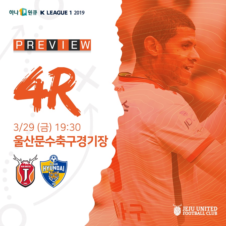 제주는 29일 오후 7시 30분 울산문수축구경기장에서 하나원큐 K리그1 2019 4라운드 울산과 경기를 치른다. 홈경기장 보수 문제로 초반 6경기 원정을 치르는 제주가 첫승을 도전한다.