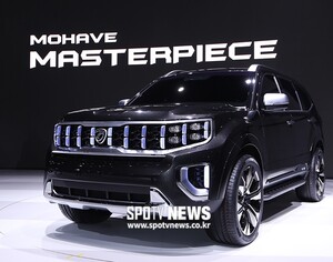 [스포티비뉴스=고양, 곽혜미 기자] '2019 서울모터쇼' 미디어 데이가 28일 오전 경기도 고양시 일산 킨텍스에서 열렸다. KIA 플래그십 스포츠유틸리티차량(SUV) 모하비의 콘셉트카 ‘모하비 마스터피스’가 세계 최초 공개되고 있다.