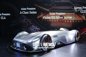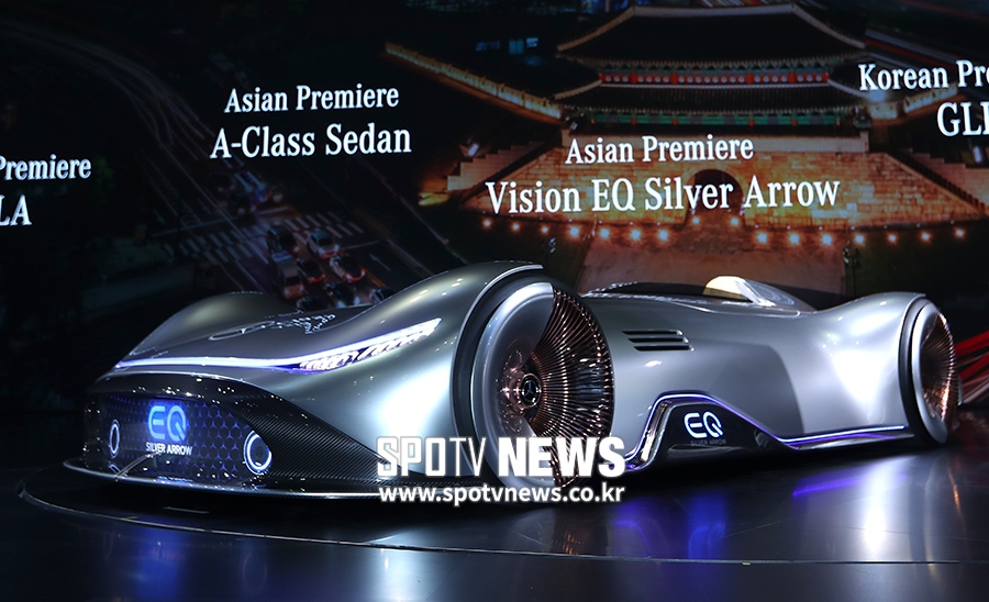 [스포티비뉴스=고양, 곽혜미 기자] '2019 서울모터쇼' 미디어 데이가 28일 오전 경기도 고양시 일산 킨텍스에서 열렸다. 메르세데스-벤츠 더 비전 EQ 실버 애로우가 공개되고 있다.