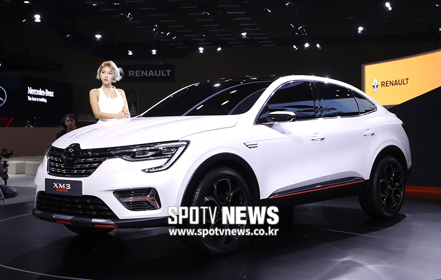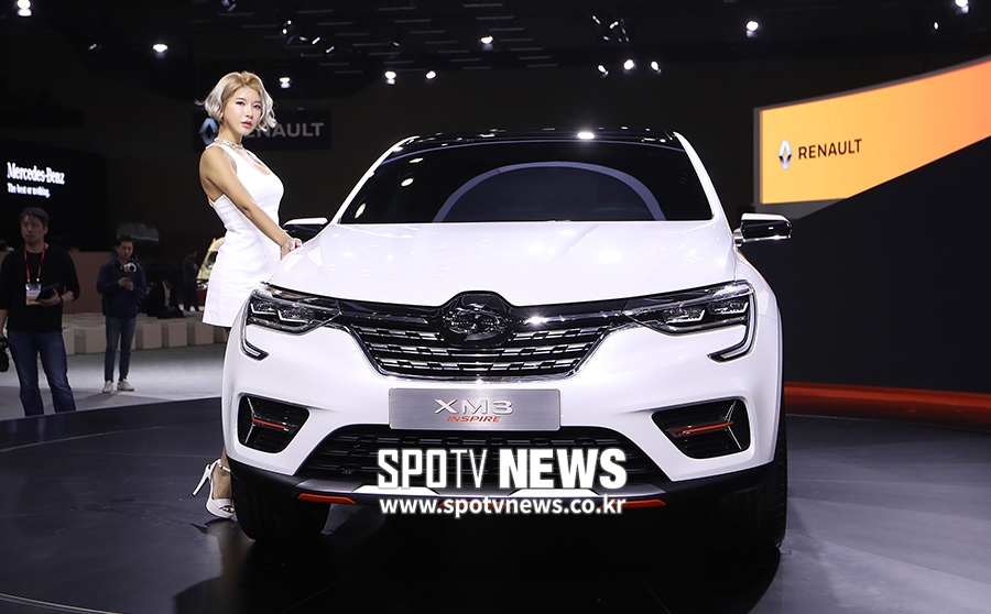 [스포티비뉴스=고양, 곽혜미 기자] '2019 서울모터쇼' 미디어 데이가 28일 오전 경기도 고양시 일산 킨텍스에서 열렸다. 르노삼성자동차 ‘XM3 인스파이어(INSPIRE)’가 공개되고 있다.