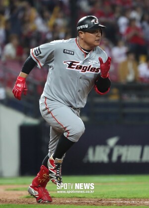 ▲ 한화 내야수 김태균 ⓒ한희재 기자[스포티비뉴스=광주, 고유라 기자] 한화 이글스 내야수 김태균이 도루를 감행했다.김태균은 28일 광주-기아챔피언스필드에서 열린 '2019 신한은행 마이카 KBO 리그' KIA 타이거즈전에서 2-4로 뒤진 2사 후 볼넷을 얻어 출루했다. 이어 이성열 타석에서 2루를 훔쳤다.시즌 첫 도루이자 개인 통산 26번째 도루. 김태균의 도루는 2016년 7월 28일 대전 SK전이 마지막이었다. 그러나 이성열이 삼진으로 물러나 도루 효과는 없었다.
