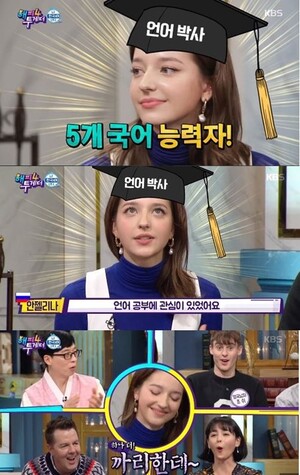 이날 방송세서 안젤리나 다닐로바는 모국어인 러시아어를 비롯해 한국어, 영어, 이탈리아어, 세르비아어 등 5개 국어를 구사할 수 있다고 밝혀 놀라움을 안겼다. 언어 공부에 관심이 있었다는 안젤리나 다닐로바는 세르비아어와 이탈리아어로 자기소개를 해 박수를 받았다.