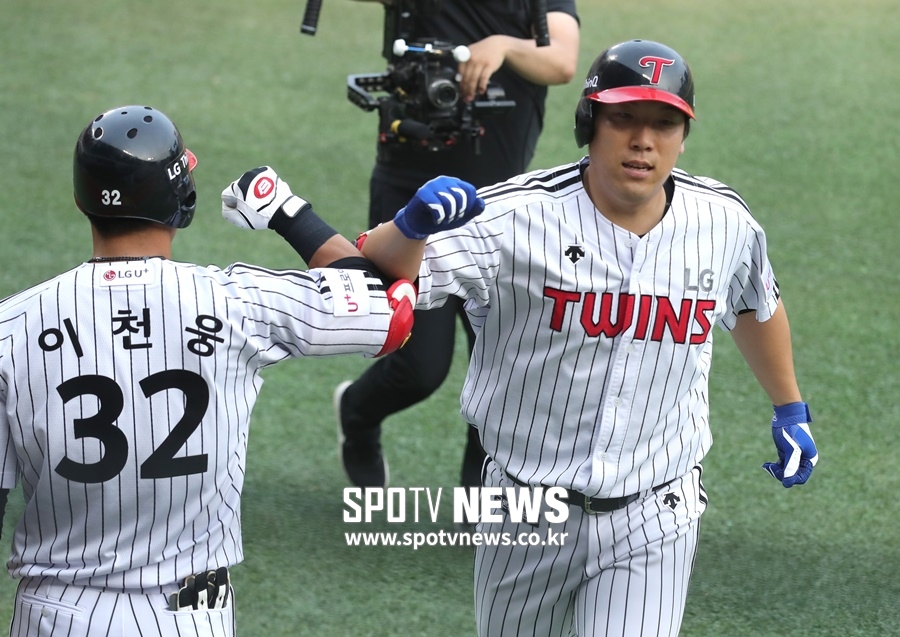 [스포티비뉴스=잠실, 김건일 기자] 6회 이천웅이 날린 타구가 좌익수 앞에 떨어지면서 2루 주자가 홈을 밟았다.