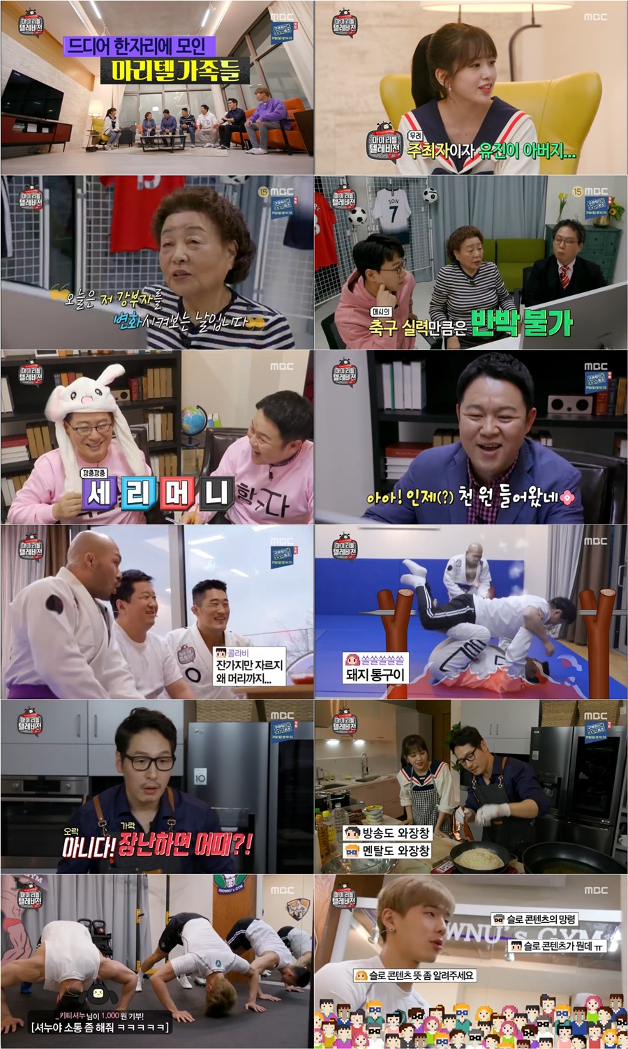 이날 기부금의 목표는 500만원이었다. 마리텔 저택에 모인 이들은 기부금을 채울 수 있을까 하는 부담과 걱정 속 본격적인 방송이 시작됐다. 정형돈, 김동현, 이종격투기 선수 조남진 관장으로 구성된 '동정남TV'에서는 주짓수로 배워보는 실전 무술을, 김구라는 정치9단 박지원 국회의원과 함께했으며, 김풍은 푸드와 아트가 결합 된 푸드 아트를, 셔누는 홈트레이닝 슬로 콘텐츠를, 강부자는 축구 콘텐츠를 선보였다.