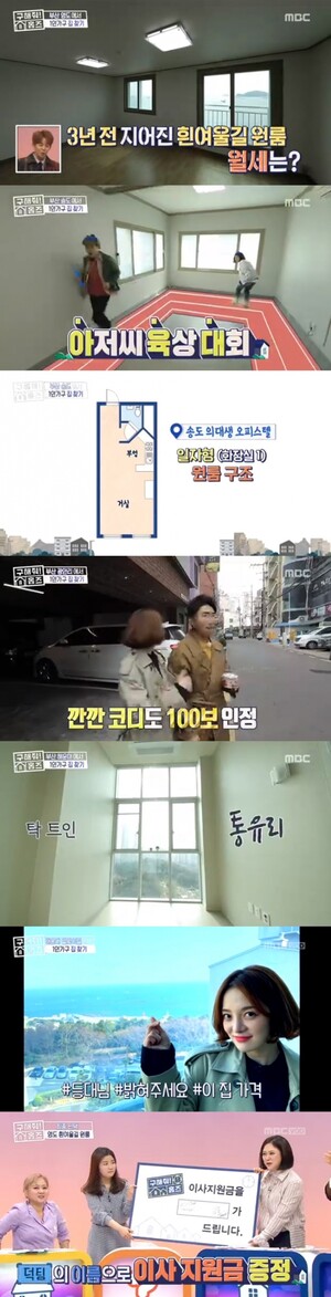 장동민과 황보라의 복팀은 광안리 해변에서 100보가 안 되는 거리의 집을 첫 번째 매물로 살펴봤다. 철통보안은 물론 풀옵션까지 갖춘 집이었다. 두 번째 매물은 해운대구 한 복판에 위치한 3단 복층 원룸. 통유리 거실에 채광까지 특별해 출연진 모두 입을 쩍 벌리며 감탄했을 정도. 마지막 매물은 해운대구 달맞이길에 위치한 쓰리룸 아파트. 넓은 주방과 바다뷰 거실이 매력적이었다. 장동민, 황보라는 접근성과 가격 등을 고려해 두 번째 집을 추천 매물로 선택했다.