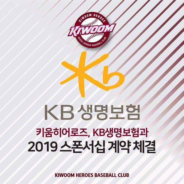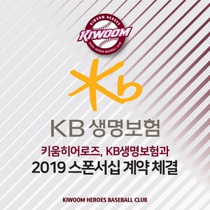 [스포티비뉴스=김민경 기자] 키움 히어로즈는 KB금융그룹의 생명보험사인 KB생명보험과 2019시즌 광고 후원에 따른 골드 스폰서십 계약을 체결했다.KB생명보험과 골드 스폰서십 계약을 체결한 키움히어로즈는 2019시즌 동안 선수단이 착용하는 유니폼 상의 어깨 패치와 본부석 LED 광고를 제공하고, KB생명보험은 광고에 따른 후원을 실시한다.