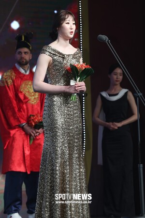 [스포티비뉴스=서울, 곽혜미 기자] 2018-2019 V리그 시상식이 1일 오후 서울 서초구 양재동 더케이호텔에서 열렸다. 베스트 드레서상을 수상한 고예림이 수상 소감을 말하고 있다.
