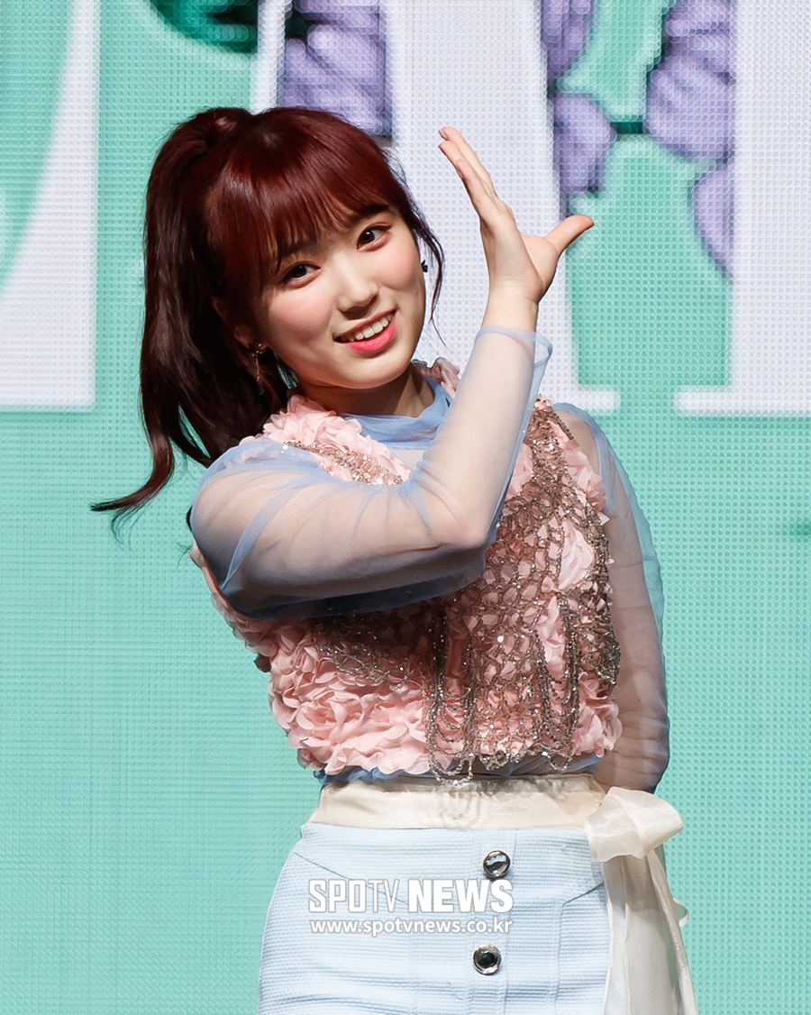[스포티비뉴스=서울, 한희재 기자] 걸그룹 아이즈원의 두 번째 미니 앨범 ‘HEART*IZ’의 쇼케이스가 1일 오후 서울 용산구 한남동 블루스퀘어에서 열렸다. 멤버 야부키 나코가 사진 촬영을 위해 포즈를 취하고 있다.