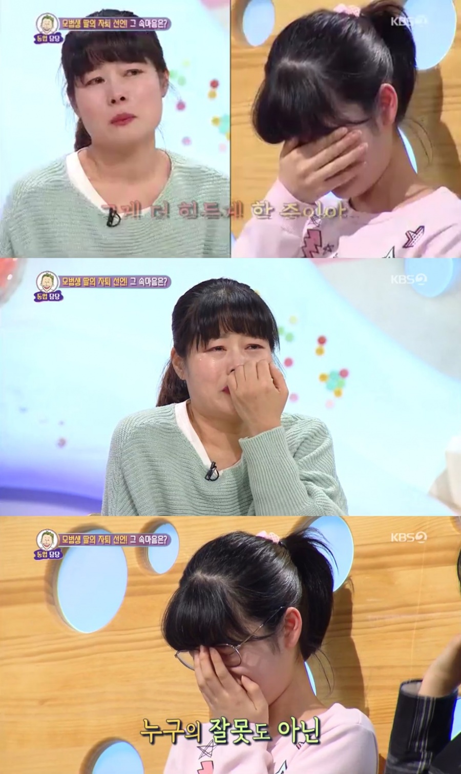 1일 방송된 KBS2 예능프로그램 '안녕하세요' 에서는 1등 하다가 중학교를 입학한지 4일만에 자퇴를 선언한 딸의 사연이 공개됐다.