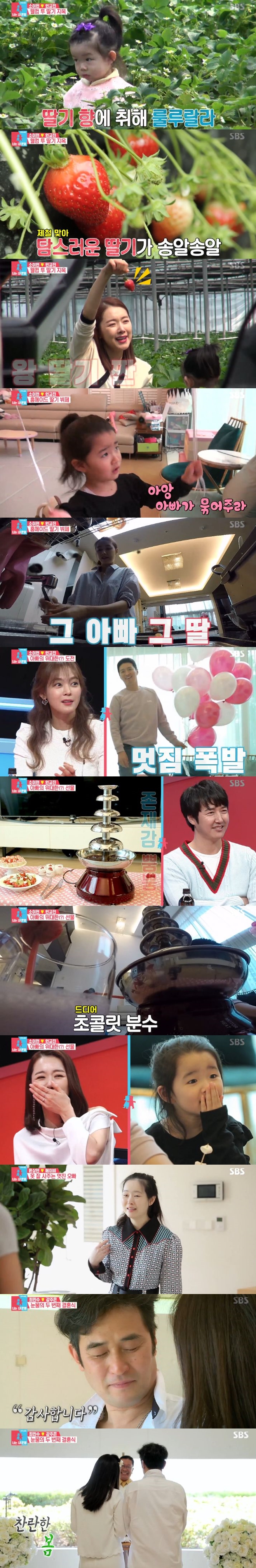이들의 첫째 딸 하은은 운반하다 딸기를 쏟았고 딸기를 주워 담으며 "딸기야 아팠어?"라고 진심으로 걱정해 웃음을 자아냈다. 소이현은 "따온 딸기로 집에서 딸기 뷔페를 하겠다"고 선언했다.
