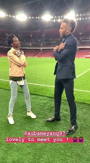 여기서 그치지 않았다. 오바메양은 영화 블랙 팬서에 출연한 배우 레티티아 라이트를 만나 세리머니를 직접 배웠다.