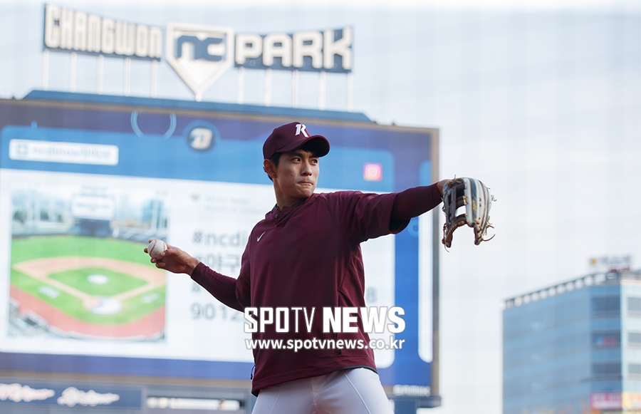 [스포티비뉴스=창원, 한희재 기자] NC 다이노스와 키움 히어로즈의 2019 신한은행 MY CAR KBO리그 경기가 2일 오후 창원NC파크에서 열린다. 키움 이정후가 캐치볼을 하고 있다.