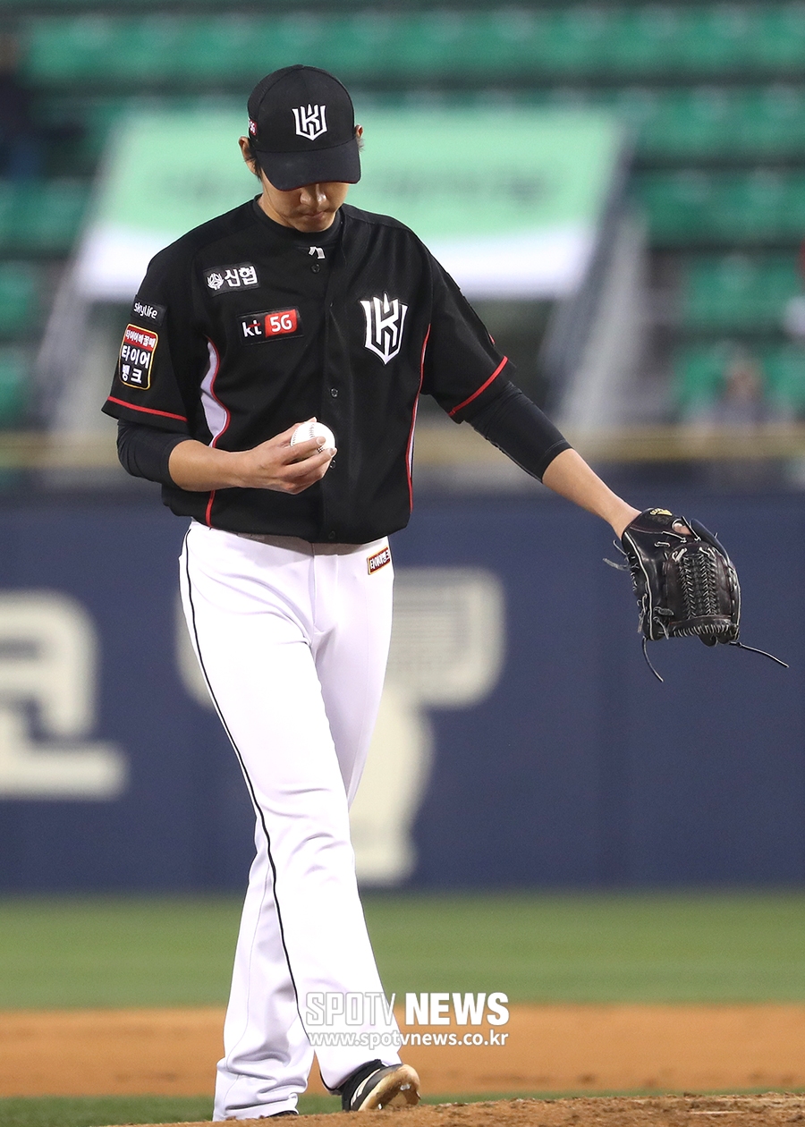 [스포티비뉴스=잠실, 곽혜미 기자] 2019 신한은행 MY CAR KBO리그 두산 베어스와 KT 위즈의 경기가 2일 오후 서울 잠실야구장에서 열렸다. 1회말 3실점을 한 KT 선발 이대은이 이닝 종료 후 아쉬운 표정을 짓고 있다.