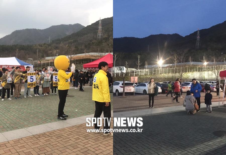 30일에는 킥오프 30분전에 유세 인파로 넘쳤다. 많은 당이 창원축구센터 8번 게이트에 운집했고 축구팬들에게 표를 호소했다. 그러나 사흘이 지나고 같은 장소에는 정치인은 없었다. 가족들과 함께 축구를 보러온 팬만 있었다.