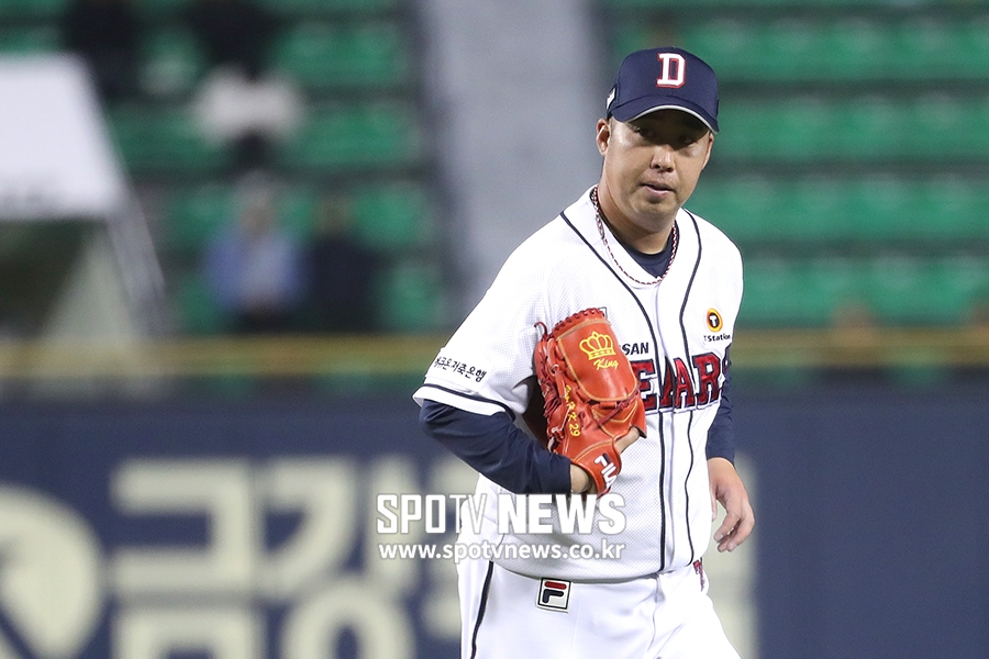 [스포티비뉴스=잠실, 곽혜미 기자] 2019 신한은행 MY CAR KBO리그 두산 베어스와 KT 위즈의 경기가 2일 오후 서울 잠실야구장에서 열렸다. 4회초까지 무실점으로 이닝을 마무리 한 두산 선발 유희관이 더그아웃으로 향하고 있다.