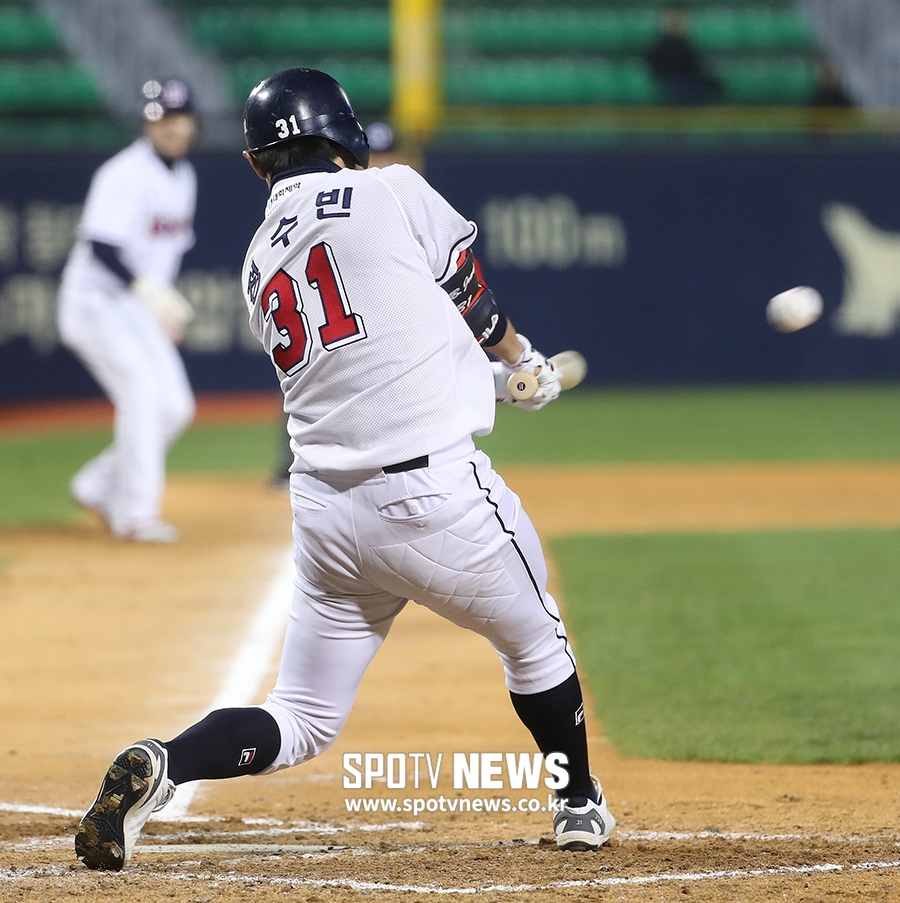 [스포티비뉴스=잠실, 곽혜미 기자] 2019 신한은행 MY CAR KBO리그 두산 베어스와 KT 위즈의 경기가 2일 오후 서울 잠실야구장에서 열렸다. 4회말 무사 만루 상황에서 두산 정수빈이 1타점 적시타를 치고 있다.