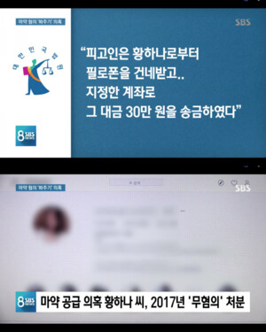 2일 오후 SBS '8뉴스'는 남양유업 창업주 외손녀 황하나에 대해 성과가 없어 불기소 처분한 사실을 보도했다.