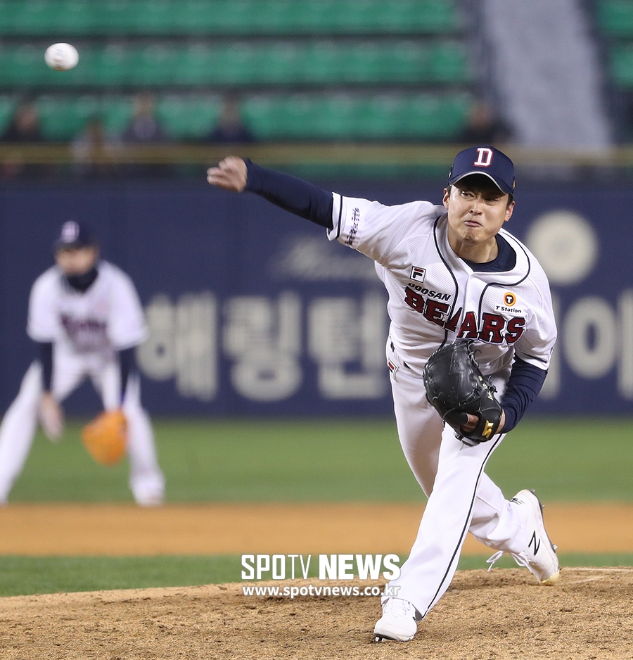 [스포티비뉴스=잠실, 곽혜미 기자] 2019 신한은행 MY CAR KBO리그 두산 베어스와 KT 위즈의 경기가 2일 오후 서울 잠실야구장에서 열렸다. 7회초 두산 이형범이 역투하고 있다.