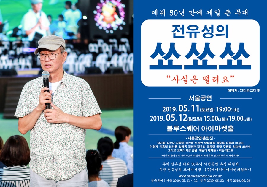 '전유성의 쑈쑈쑈'는 오는 5월11일과 12일 서울 한남동 블루스퀘어 아이마켓홀에서 열리는 서울 공연을 시작으로 6월22일 전주 전북대학교 삼성문화회관, 6월29일 제주도 제주아트센터에서 이어진다.
