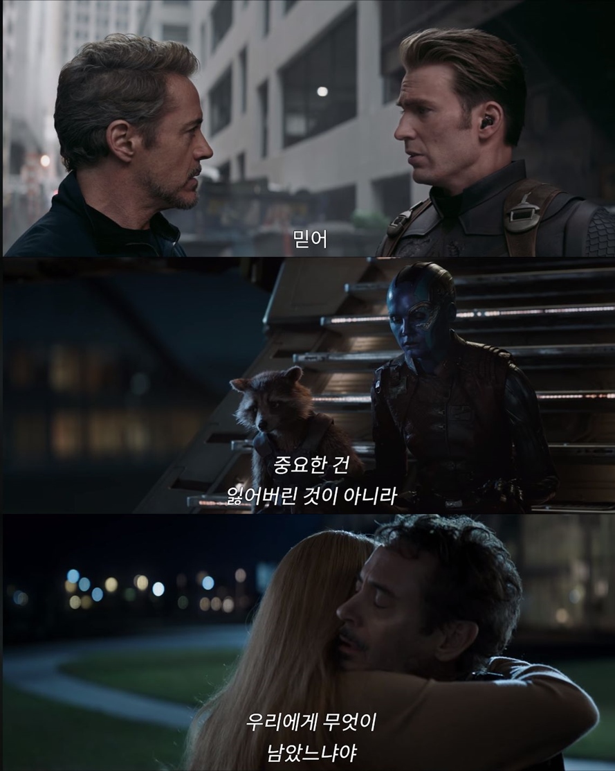 토니 스타크와 캡틴 아메리카의 만남은 시간여행의 단서뿐 아니라 다른 면에서도 의미심장하다. '캡틴 아메리카:시빌 워' 이후 완전히 갈라섰던 아이언맨과 캡틴 아메리카가 이후 처음으로 손을 맞잡았기 때문이다. 둘의 만남, 그리고 화해는 어벤져스들이 새로 뭉쳐 위기를 헤쳐나가는 핵심 동력이 될 전망으로 보인다.