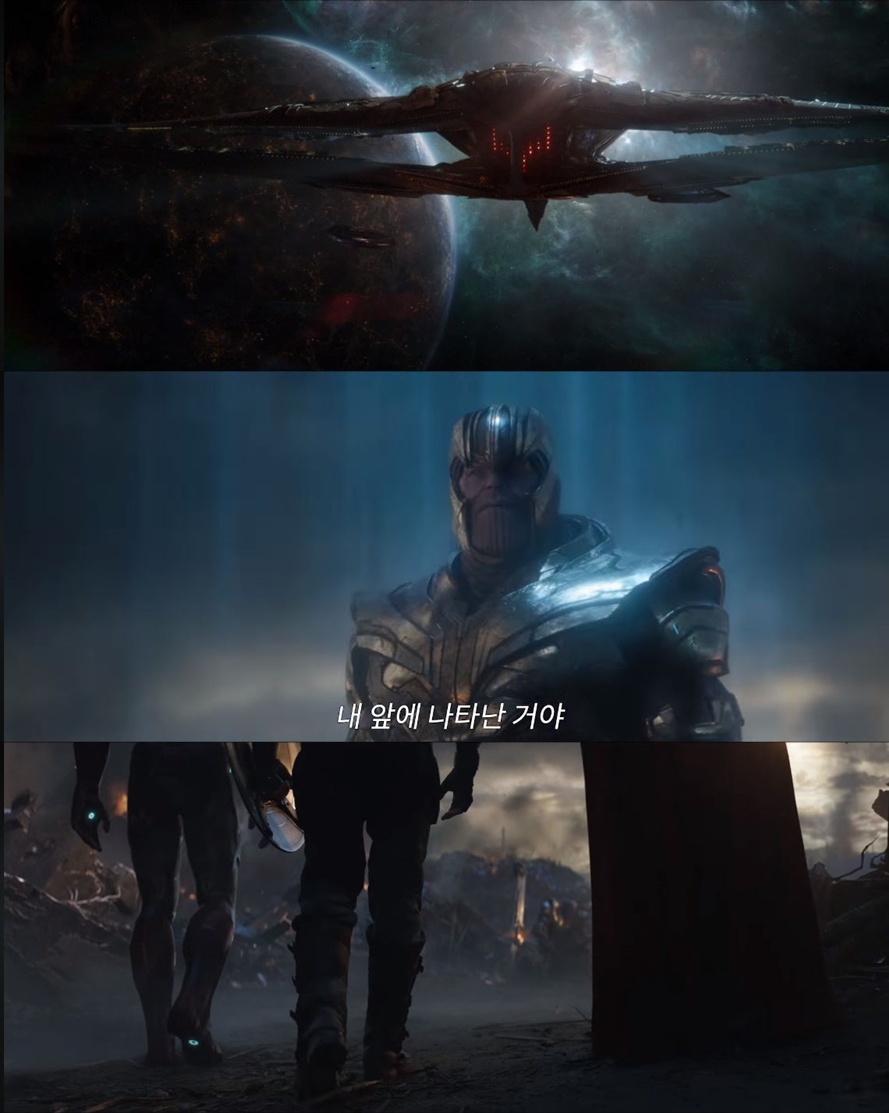 끝판왕 타노스(조슈 브롤린)와의 대결은 피할 수 없다. 파이널답게 이번 예고에는 '토르: 라그나로크'에서 등장했던 타노스의 거대 요새, 이름하여 '생추어리2'가 등장하며, '인피니티 워' 이후 허수아비에 자신의 갑옷을 걸쳐놨던 타노스가 다시 갑옷을 입고 나타나 어벤져스와의 재대결을 알린다.