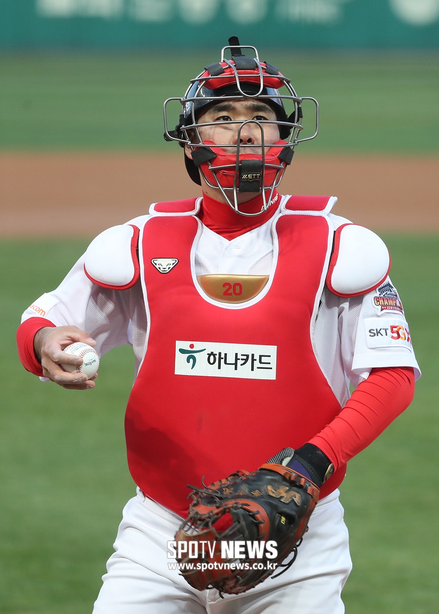 [스포티비뉴스=인천, 곽혜미 기자] 2019 신한은행 MY CAR KBO리그 SK 와이번스와 롯데 자이언츠의 경기가 3일 오후 인천 SK행복드림구장에서 열렸다. 1회초 SK 포수 이재원이 파울 타구를 바라보고 있다.
