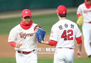 [스포티비뉴스=인천, 곽혜미 기자] 2019 신한은행 MY CAR KBO리그 SK 와이번스와 롯데 자이언츠의 경기가 3일 오후 인천 SK행복드림구장에서 열렸다. 2회초 실점 없이 이닝을 마무리 한 SK 선발 문승원이 최정과 하이파이브를 하고 있다.