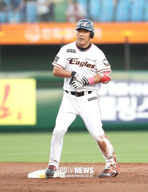 한화의 5회말 공격이었다. 선두 타자 노시환이 2루타로, 1사 후 정근우가 중전 안타에 이어 2루 도루로 2, 3루 기회를 만들었다. 2번 타자 정은원 타석에서 보기 드문 상황이 벌어졌다.