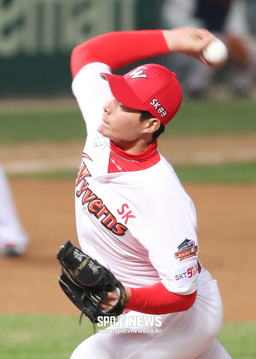 [스포티비뉴스=인천, 곽혜미 기자] 2019 신한은행 MY CAR KBO리그 SK 와이번스와 롯데 자이언츠의 경기가 3일 오후 인천 SK행복드림구장에서 열렸다. 9회초 SK 이승진이 역투하고 있다.