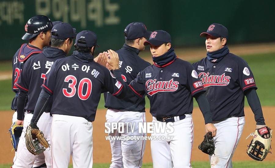 [스포티비뉴스=인천, 곽혜미 기자] 2019 신한은행 MY CAR KBO리그 SK 와이번스와 롯데 자이언츠의 경기가 3일 오후 인천 SK행복드림구장에서 열렸다. 3-1로 승리한 롯데 선수들이 승리의 기쁨을 나누고 있다.